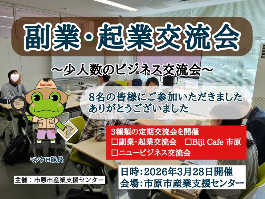 #市原市 #副業 #起業 #起業家交流会 #ビジネス交流会 #福祉ビジネス #起業準備 #千葉県 #ビジネスマッチング #市原市産業支援センター