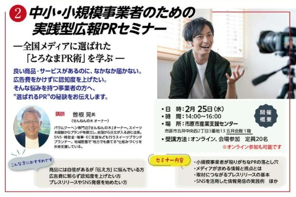メディア・お客様・ファンに“選ばれる事業”になるための実践型セミナーです。