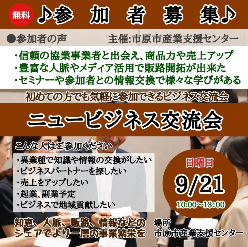 千葉の起業家・経営者必見!第43回ニュービジネス交流会で販路拡大と人脈づくりを実現
