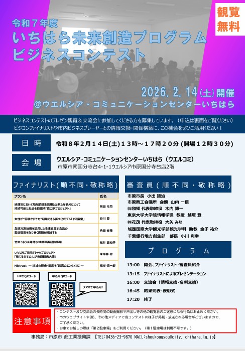【市原市主催】市原市ビジネスコンテスト最終審査プレゼンテーション&交流会 観覧者募集